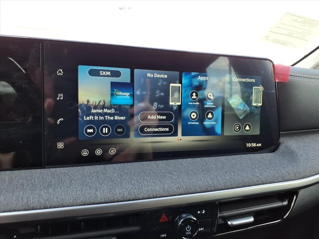 - Radio: AM/FM/SiriusXM Audio System -inc: 12.3" color touchscreen display w/4 speakers, Bluetooth® hands-free phone system, streaming audio via Bluetooth®, NissanConnect featuring wireless Apple CarPlay, wireless Android Auto, Siri eyes free and hands-free text messaging assistant, audio and Bluetooth® steering wheel switches