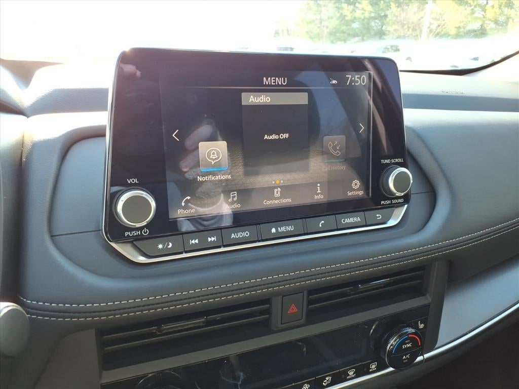 - Radio: AM/FM NissanConnect -inc: 6 speakers plus 2 tweeters, Apple CarPlay, Android Auto, 8" color touch screen display, Bluetooth®, 2 front USB type-C, Wi-Fi hotspot and NissanConnect Services powered by SiriusXM